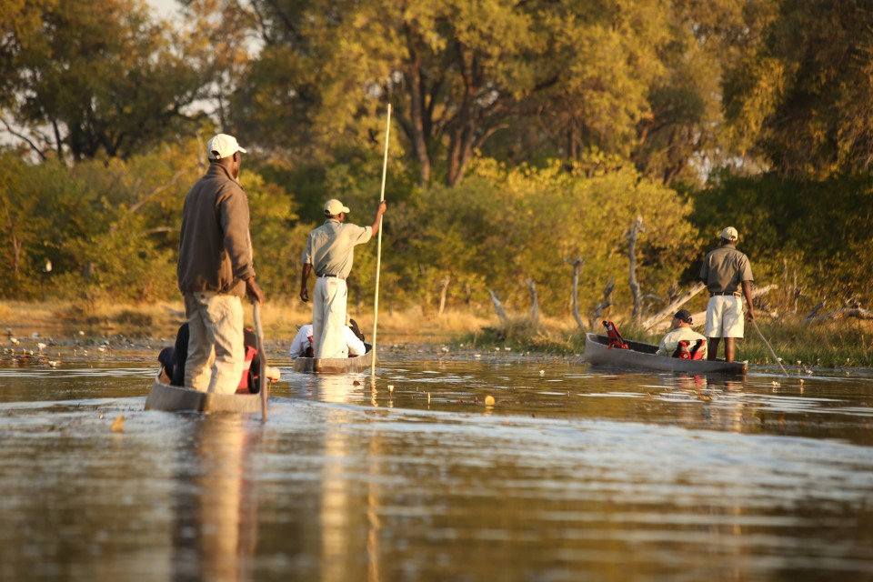 We also set off on a mokoro ride along the winding channels of the inland delta – the ideal way to discover this watery ecosystem. Local guides pole the traditional-style mekoros (dug-out canoes) through the shallow waters for about two and a half hours, revealing the details, smells and sounds of this unique wild place. Both the night game drives and the mokoro cruise take place in the Khwai region, bordering on Moremi in the eastern part of the Okavango Delta.